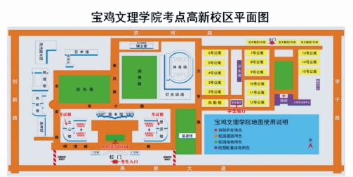 考试地点设在宝鸡文理学院高新校区,地址为陕西省宝鸡市高新大道1号。考场分布在立心楼和思贤楼,如下图所示,具体考场安排请以准考证说明为准。