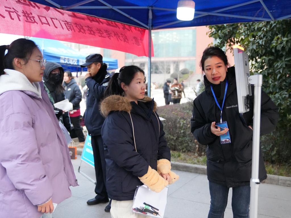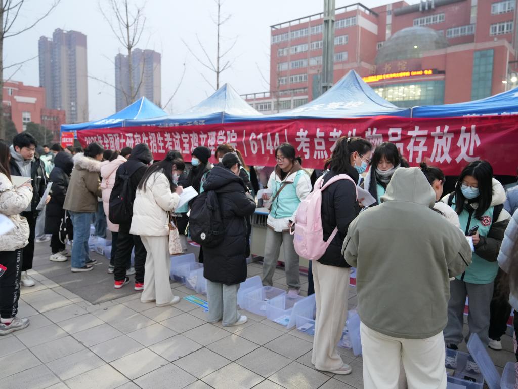 学校考点在各环节做实做细考生服务。考前,通过学校官方微信公众号和研究生院官网等发布考前公告,就诚信考试、考生须知、考点公告和考场分布等各类信息,向考生做好温馨提醒。考试当天,学校在各入口和沿路设置指路牌,快速引导考生到达考场所在教学楼。开通研考咨询专线,安排专人值班为考生答疑解惑。协调公安及交警部门做好交通治安保障,为考生顺利赴考保驾护航。考试期间,天气严寒,学校为考生设置候考休息室,安排考生在餐厅分区就餐,配备考试医疗应急保障、应急电力车等车辆,全力为考生创造便捷、舒适、安全、稳定的考试环境。